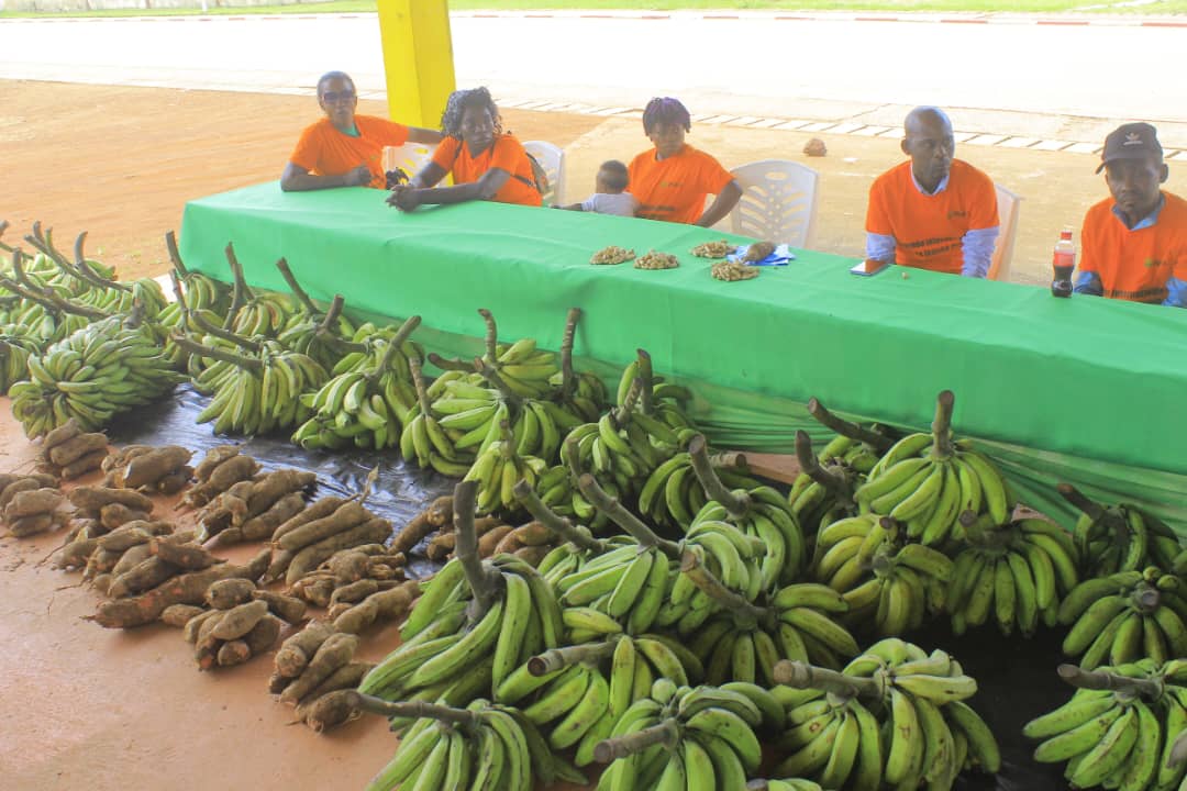 Au total, 16 coopératives ont pris part à cette foire, représentant les villages partenaires de Mboukou, Rembo, Ferra, Iroungou, Nanga, Nyanga-Youngou, et plusieurs coopératives sœurs de la commune de Mouila. Les exposantes ont présenté une grande diversité de produits vivriers locaux, agrumes et PFNL : bananes, manioc, asperges, feuilles de manioc, ananas, mangues, légumes-feuilles, curcuma, patates douces, citronniers, pamplemoussiers, etc.